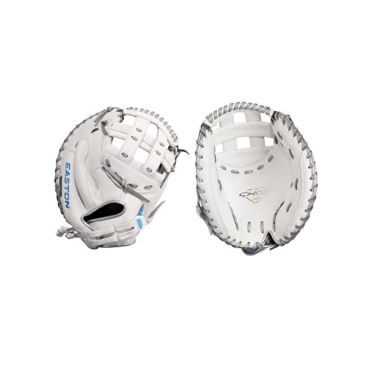 Easton’s Ghost series is a symbol of elite fastpitch play. The Ghost NX 34-inch Catcher’s Mitt fits right in. These gloves were crafted in gameday-specific patterns designed for smaller hands and perfectly suited to the fastpitch game. On the outside, the Game Ready Diamond Pro Steer leather and Flex Notch closure system make this glove super soft and easy to handle right away. The Quantum Closure System on the glove back ensures a perfect fit for every player, and the interior Ax Suede microfiber lining creates unmatched comfort and durability. Also, the striking white-and-blue colorway and professional-grade silver metallic rawhide lace are sure to turn heads. Hit the field with the Ghost NX 34-inch Catcher’s Mitt and master the softball diamond.