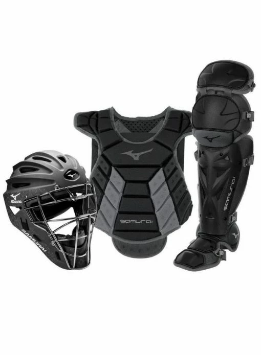 Made with high-quality materials and full of innovative design details, Samurai gear is highly durable and made for high-performance and protection without compromising comfort. The Samurai Chest Protector is constructed with a Low Rebound Foam with a specially designed grippy surface to help keep balls in front of you. Shin Guards feature Mizuno’s patented K-Pad for superior comfort, while the Samurai Catcher’s helmet is designed with a strategic ventilation system, 3-layer EVA foam padding, and a strong steel mask. The ultimate catcher’s gear set, Samurai is made for the catcher who demands high performance. Set includes Samurai Adult Helmet (6 1/2” – 7 1/4”), Samurai Adult Shin Guards (16”), and Samurai Chest Protector (14-15″).